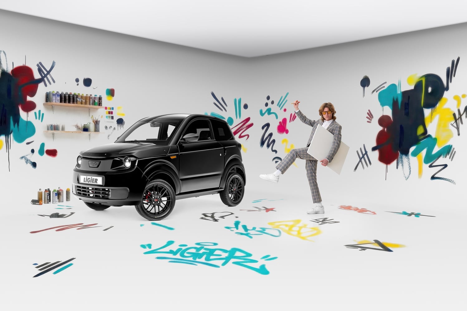 La Ligier Myli LAB incarna una nuova visione della mobilità: moderna, accessibile e altamente personalizzabile. Il suo design contemporaneo si adatta a ogni stile grazie a elementi distintivi come gli adesivi neri opachi e i nuovi cerchi e coppe ruote nero effetto carbonio.